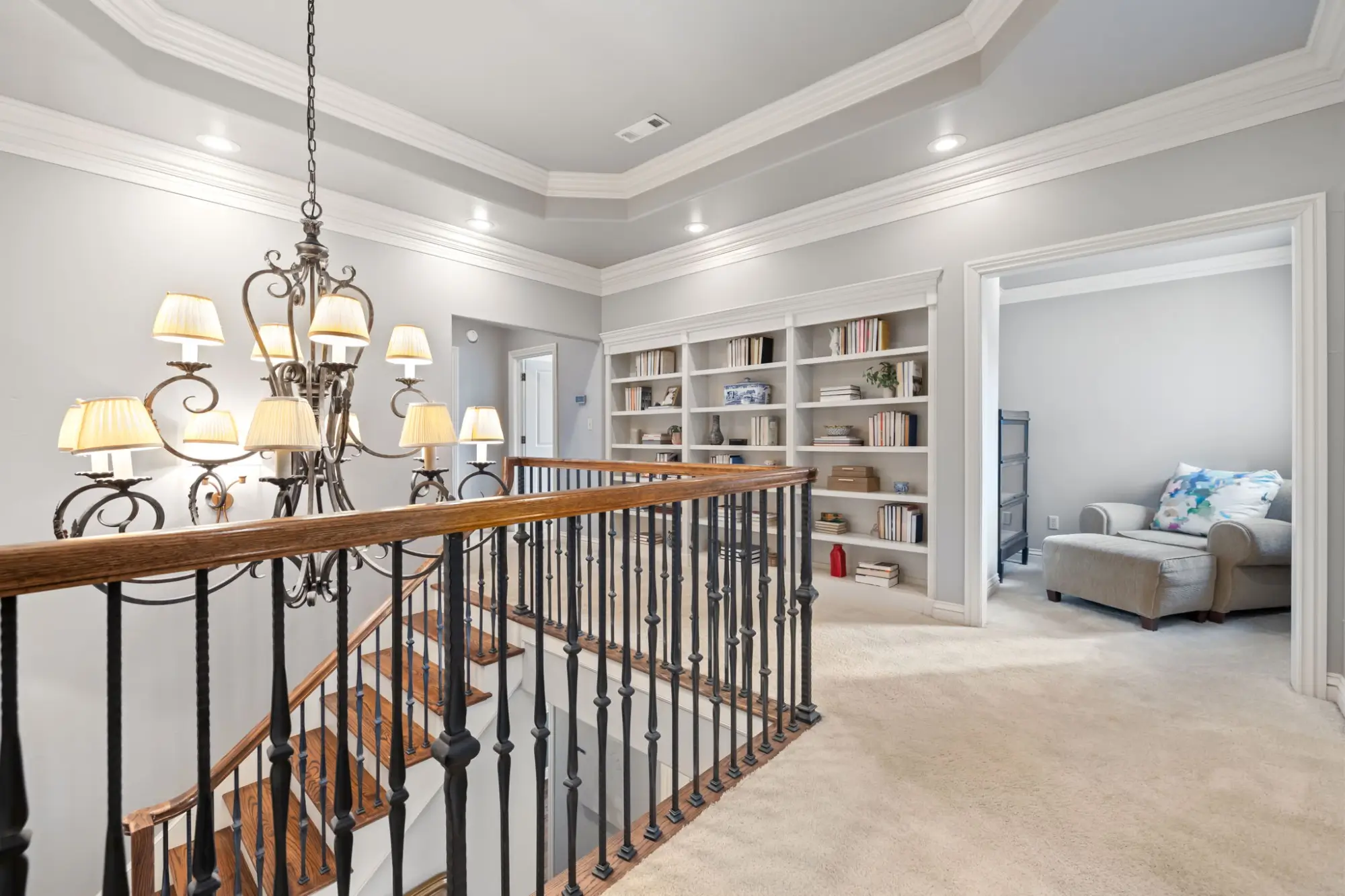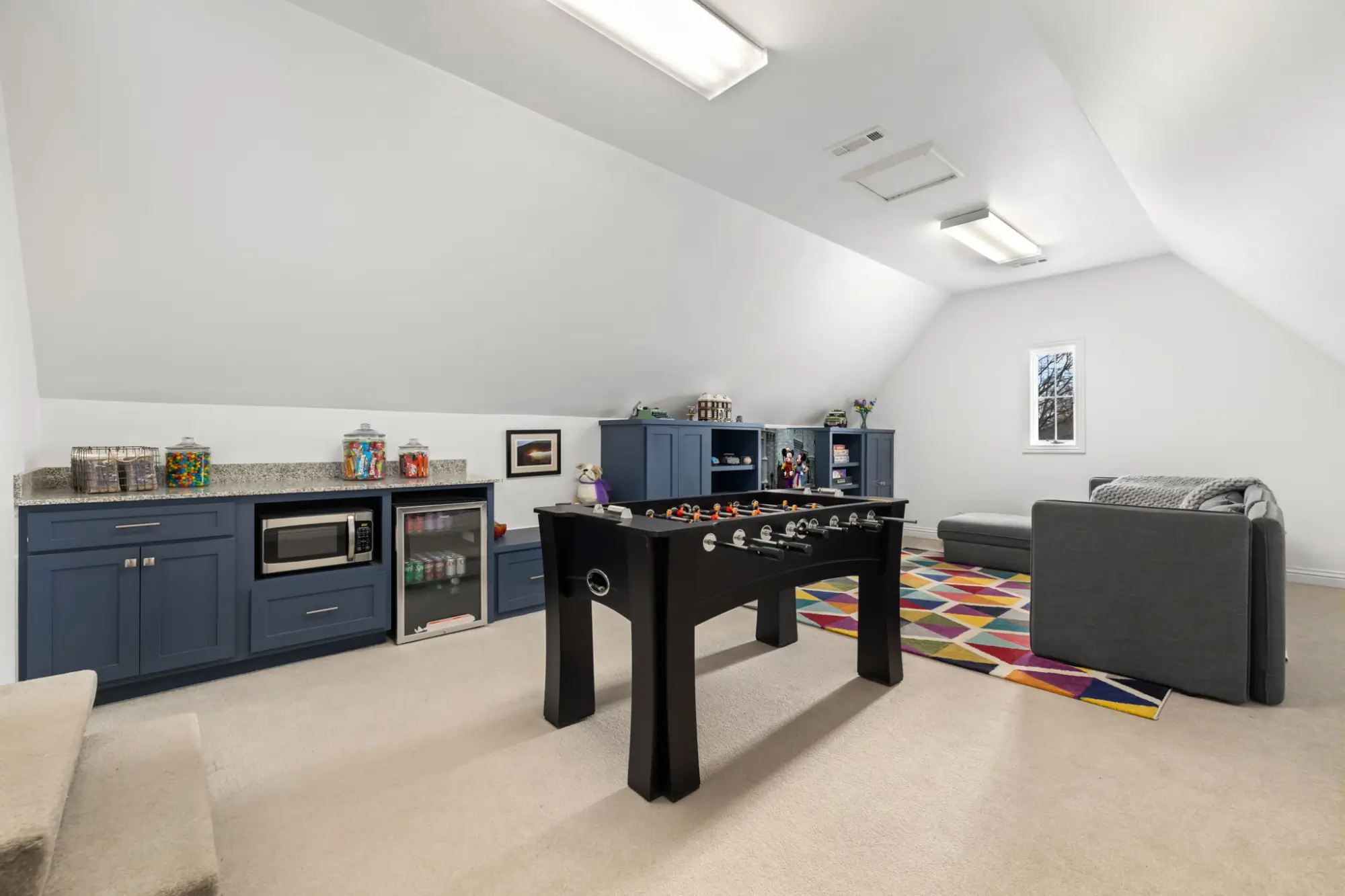 Upstairs is ready for game nights & sleepovers with a fridge, built-ins, sectional, and foosball table in the bonus room.