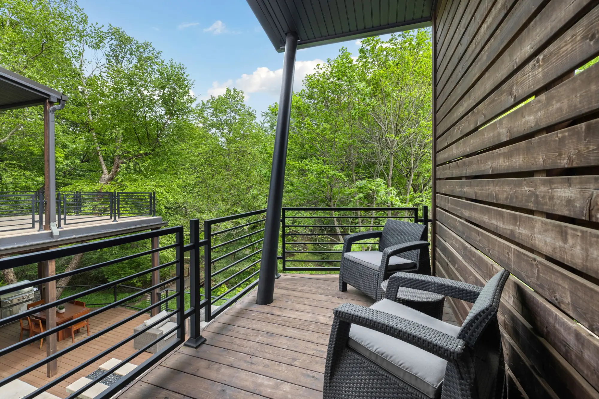 0.58-acre lot with professionally landscaped, tree-filled groundsMultiple decks with a canopy-like, treehouse feel